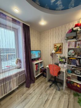 Продается просторная 3-комнатная квартира студия с евроремонтом на 4 этаже 10-этажного дома. Общая площадь — 54,5 кв. м, жилая — 30 кв. м, кухня — 9,2 кв. м. Дом построен в 2012 году из панелей, высота потолков — 2,7 метра. Окна выходят во двор, в квартире есть одна лоджия.