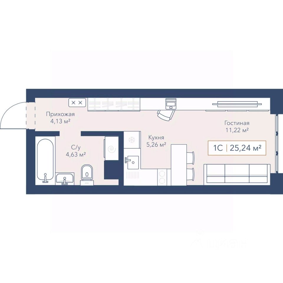 Общая площадь25,2 м²