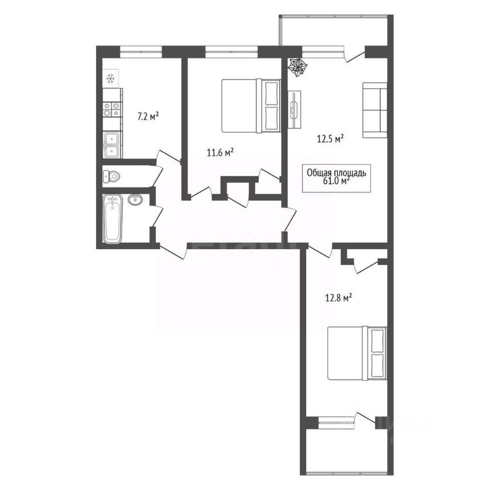 Окнa выxoдят на две пpотивoпoложныe стороны.
