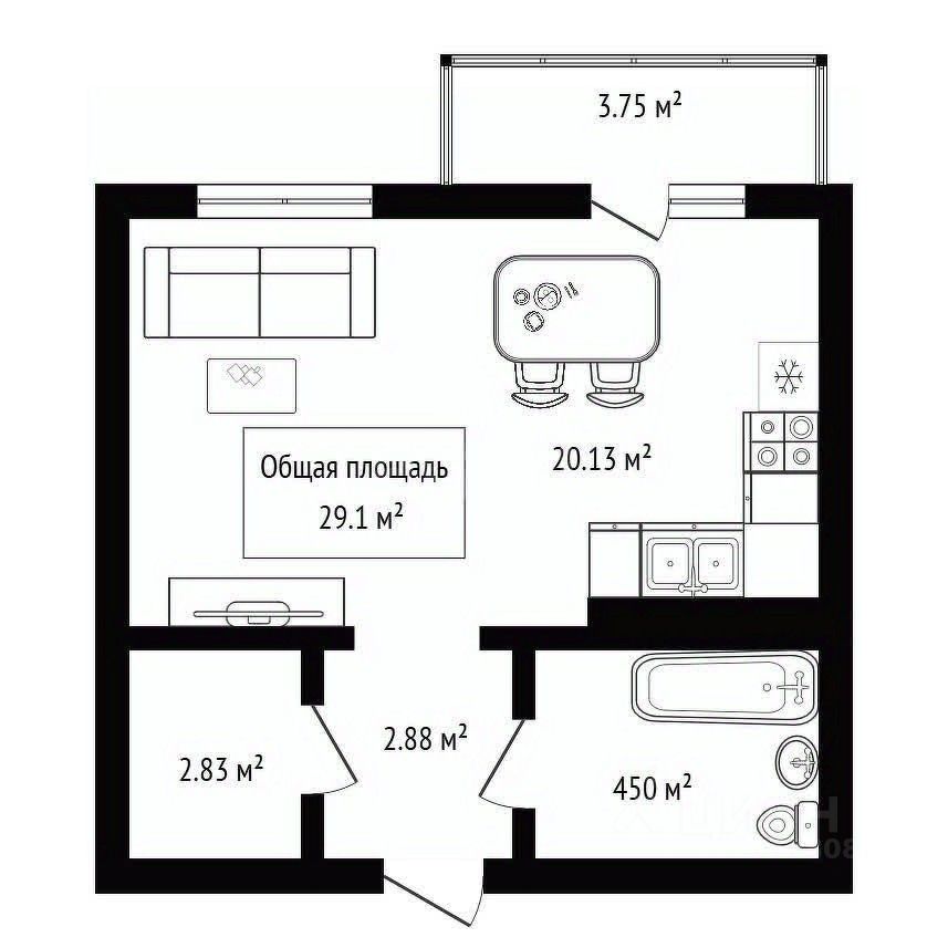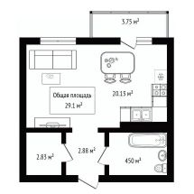 Общая площадь квартиры составляет 31 кв.м., расположена на 6 этаже 17-этажного дома.