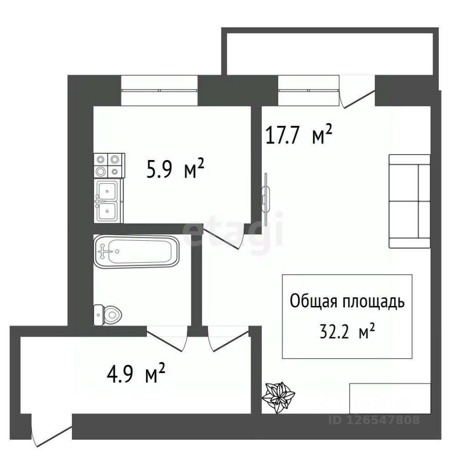 Площадь: 32,2 м²