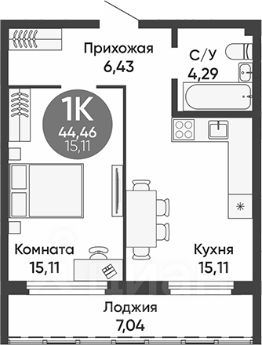 Это одна из удобных и ликвидных планировок. Она будет пользоваться спросом у покупателй и арендаторов
