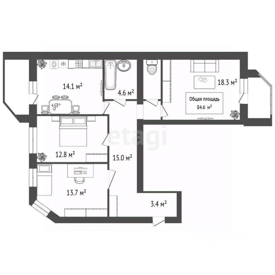 Эта квартира идеально подойдет как для собственного проживания, так и для сдачи в аренду.