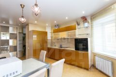 Квартира в отличном состоянии с качественным дизайнерским ремонтом, мебелью и бытовой техникой, что позволяет заселиться сразу после покупки. Интерьер квартиры выполнен в нежных пастельных тонах и в сочетании с высокими потолками (2,75 метра) увеличивает и так довольно обширное пространство. Панорамные окна, сквозь которые проникает мягкий солнечный свет, создают атмосферу уюта и комфорта. Вся мебель и бытовая техника остаются в квартире: встроенные холодильник и морозильная камера, варочная панель, духовой шкаф. Инженерные системы, отделка санузлов, ремонт квартиры выполнены с применением современных материалов и поддерживаются в безупречном состоянии.