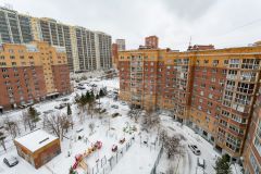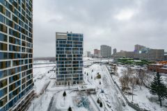 Квартира расположена на 10 этаже. Окна квартиры выходят на две стороны: с одной стороны - во двор, с другой стороны открывается вид на Ледовый дворец. Планировка включает две изолированные комнаты: спальня и детская, а также большую кухню-гостиную, что оптимально для комфортного проживания семьи.