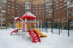 Двор дома закрыт от посторонних лиц, обеспечивая безопасность жильцов. Во дворе расположены детская игровая и баскетбольная площадки.