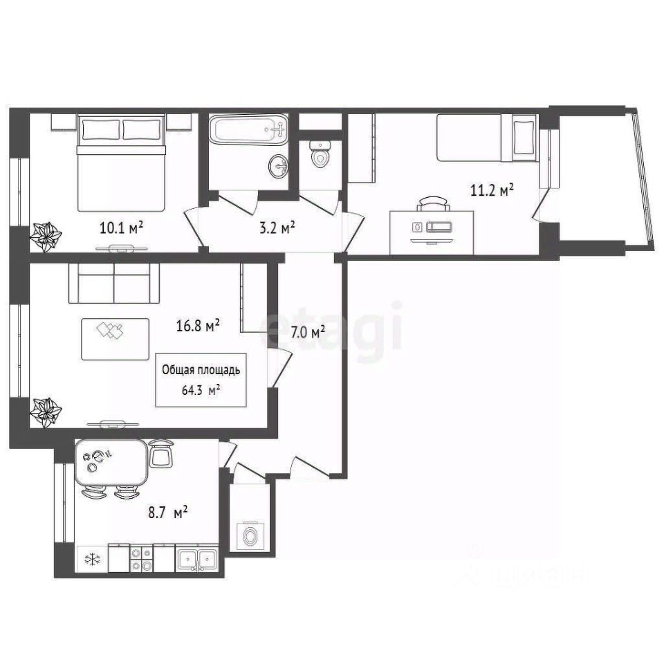 Комнаты изолированные, большие. Сан.узел раздельный.
