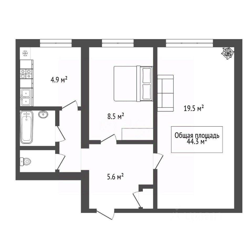 Планировка эффективная, с изолированными комнатами и солнечной стороной, что обеспечивает прекрасное естественное освещение и благоприятный микроклимат зимой. В квартире нужен косметический ремонт: поменять обои.
