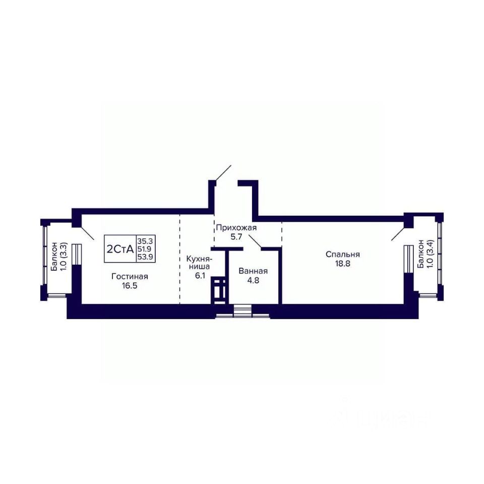 Общая площадь53,9 м²