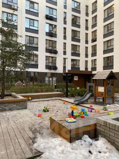 Ухоженный закрытый двор с детской площадкой — безопасное место для игр и прогулок малышей