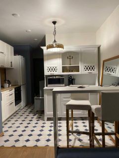 - Современный кухонный гарнитур, барная стойка, холодильник, диван, шкаф и комод ,стеллаж для книг )