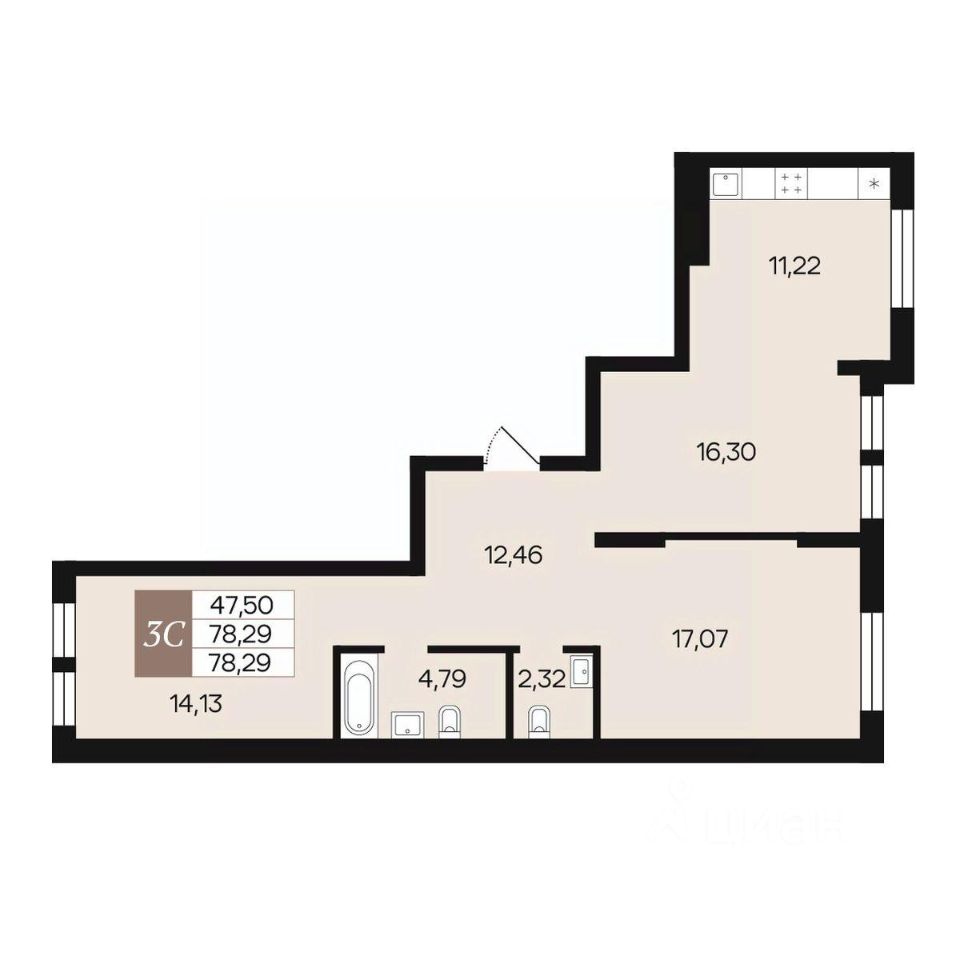 Общая площадь78,29 м²