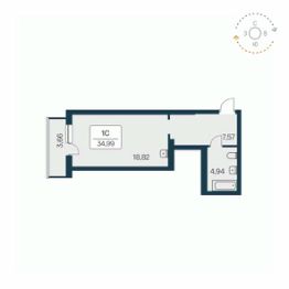 Продаётся 1-комнатная квартира в сданном доме (Дом 1), срок сдачи: III-кв. 2023, общей площадью 34.3 кв.м., на 17 этаже.