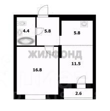 В продаже двухкомнатная студия 44,1м. без учета лоджии.