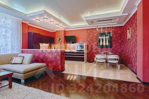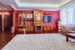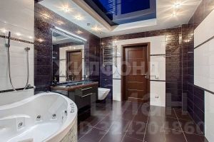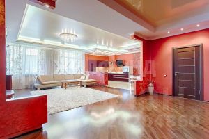 Планировка квартиры включает: * просторную прихожую 17,7 кв.м, * кухню-гостиную с панорамными окнами 68,2 кв.м, * две изолированные комнаты 14,8 кв.м и 23,4 кв.м, * ванную комнату с санузлом, гидромассажной ванной (джакузи), гидромассажной душевой и прекрасной сауной 16,4 кв.м. Кухонную зону и гостиную связывает прекрасная барная стойка с цветной подсветкой. Дополнительно к общей площади имеется большая лоджия 9 кв.м с панорамным остеклением, отличной внутренней отделкой и превосходным видом из окон. Предусмотрены также постирочная и гардеробная комнаты, вместительный шкаф-купе. Высота потолков 3,02 метра!