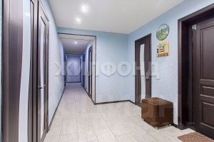 В квартире три спальни - 22, 16 и 16 кв.м, две из них с выходом на балкон и лоджию, кухня - гостиная 21 кв.м., раздельный санузел, просторный холл и 2 вместительных гардеробных, одна из них размером 6 кв.м, с окном.