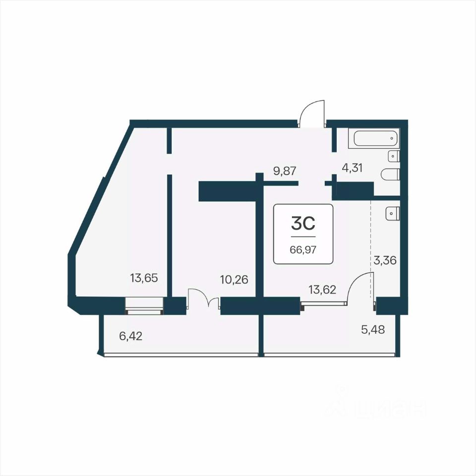 "В продаже 3-комнатная квартира, площадью 66.97, под номером 1335 в новом Доме ЖК "Сакура парк"." Сакура парк это квартал из трех 25-этажных домов комфорт-класса, расположенный в новом центре, в шаговой доступности от станции метро "Октябрьская". Камерное благоустройство каждого двора соседствует с зеленым парком "Аллея городов".