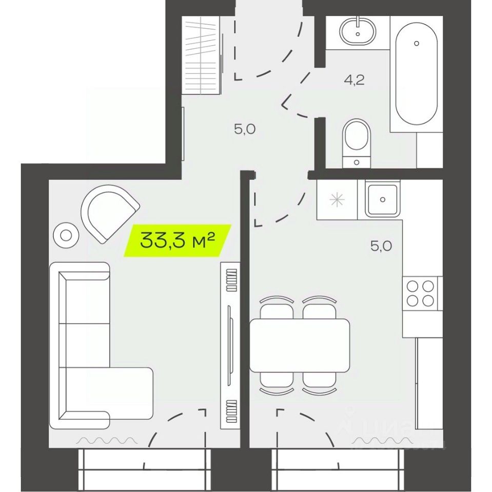 Общая площадь33,28 м²