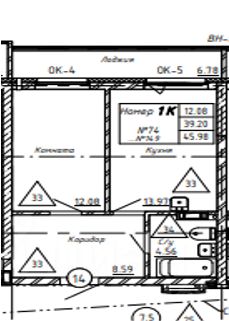 - Общая площадь 45,5 м2;