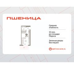 Студия в жилом районе "Пшеница". Особенности планировки: вид во двор, предчистовая отделка, балкон.