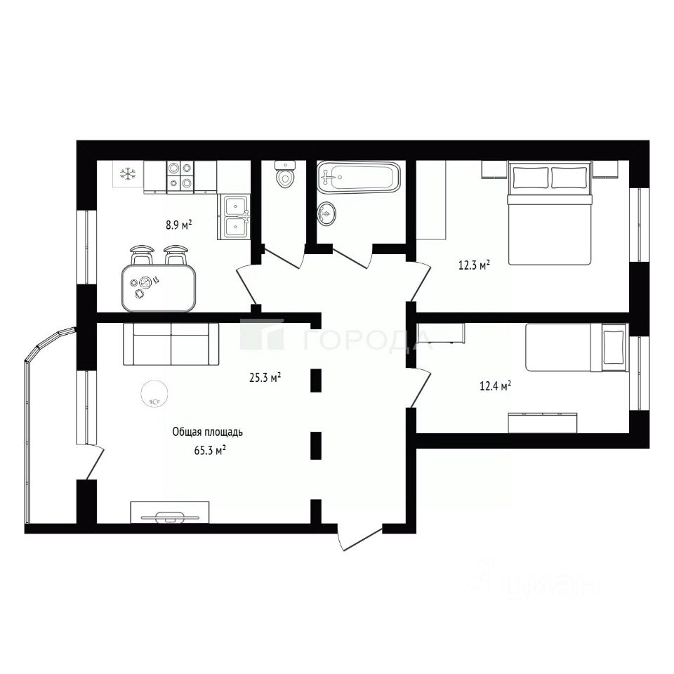 Продаётся трёхкомнатная квартира площадью 65,3 кв. м на десятом этаже десятиэтажного панельного дома 1986 года постройки по адресу: улица Селезнёва, 50. Жилая площадь составляет 50 кв. м, кухня — 9 кв. м. Высота потолков — 2,7 м. Окна выходят с одной стороны на парк, с другой во двор.