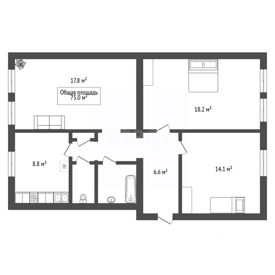 • одна 14 м²