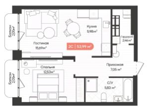 Общая площадь53,99 м²