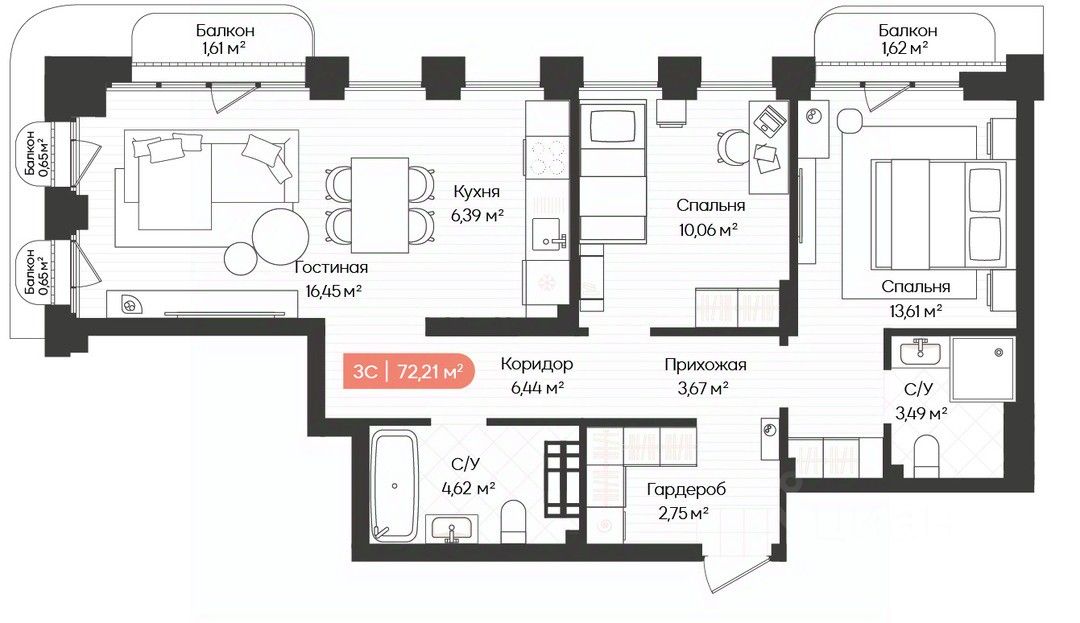 Общая площадь72,21 м²