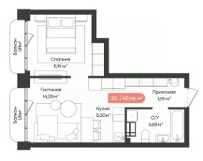 Общая площадь40,46 м²