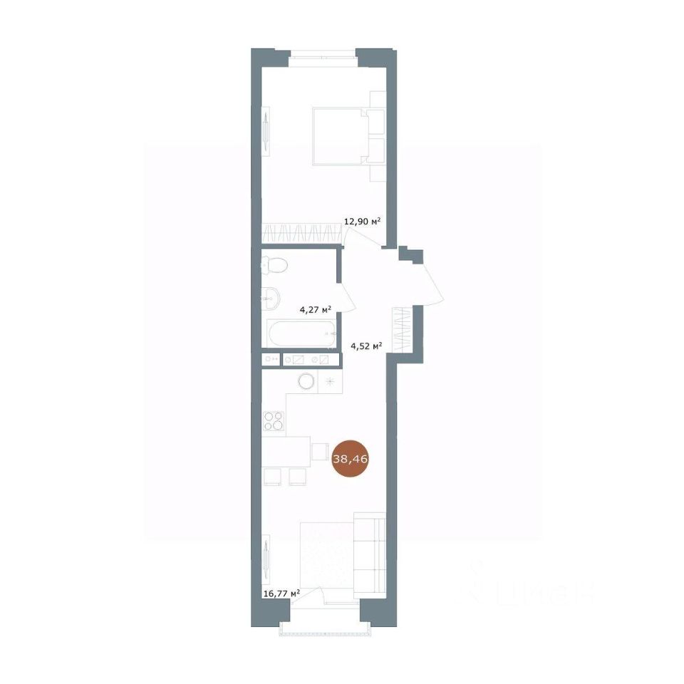 Общая площадь38,46 м²