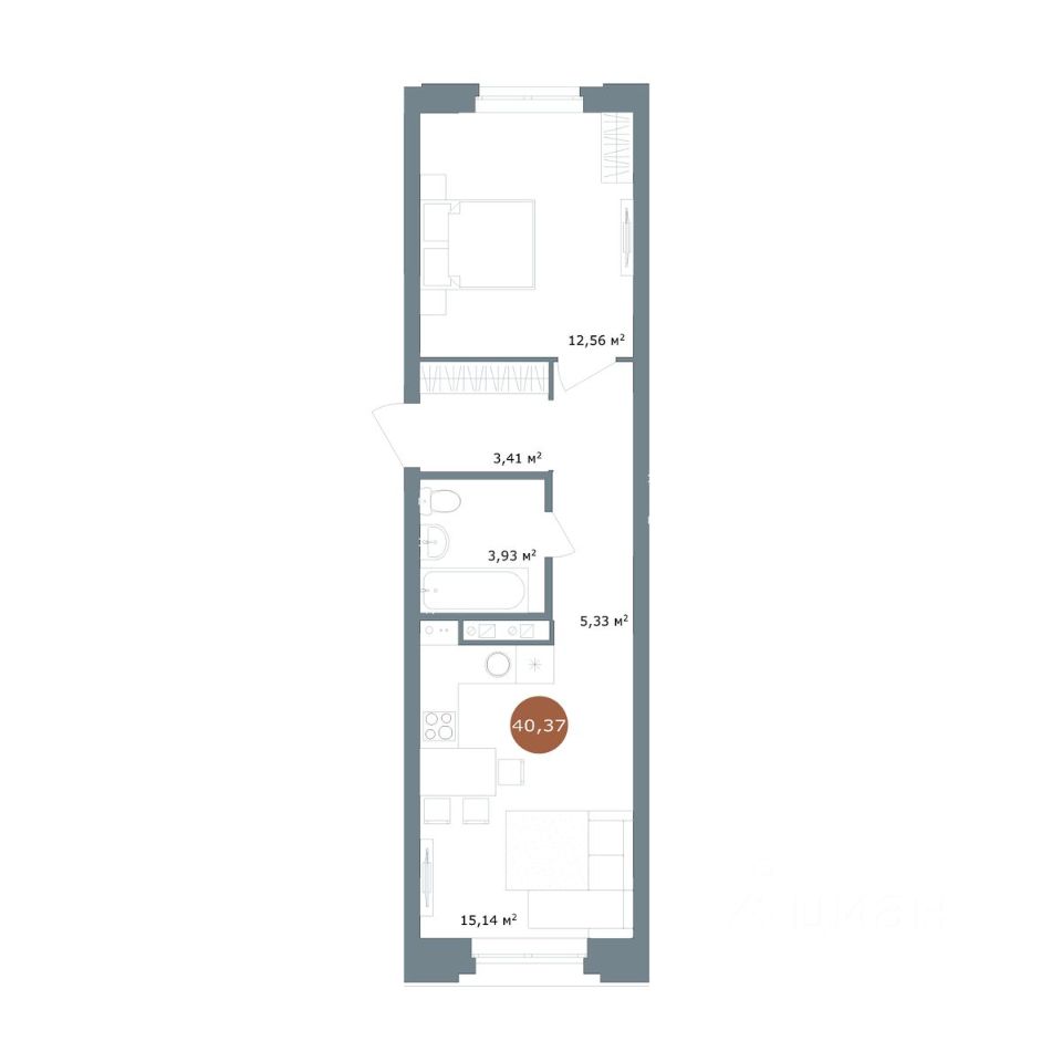 Общая площадь40,37 м²