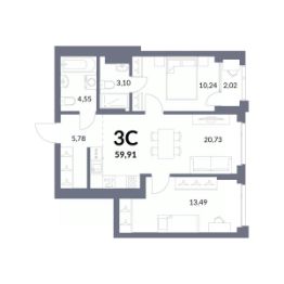 Общая площадь58,9 м²