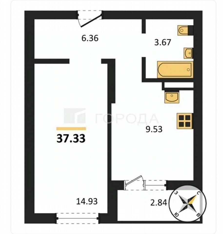 Общая площадь37,33 м²