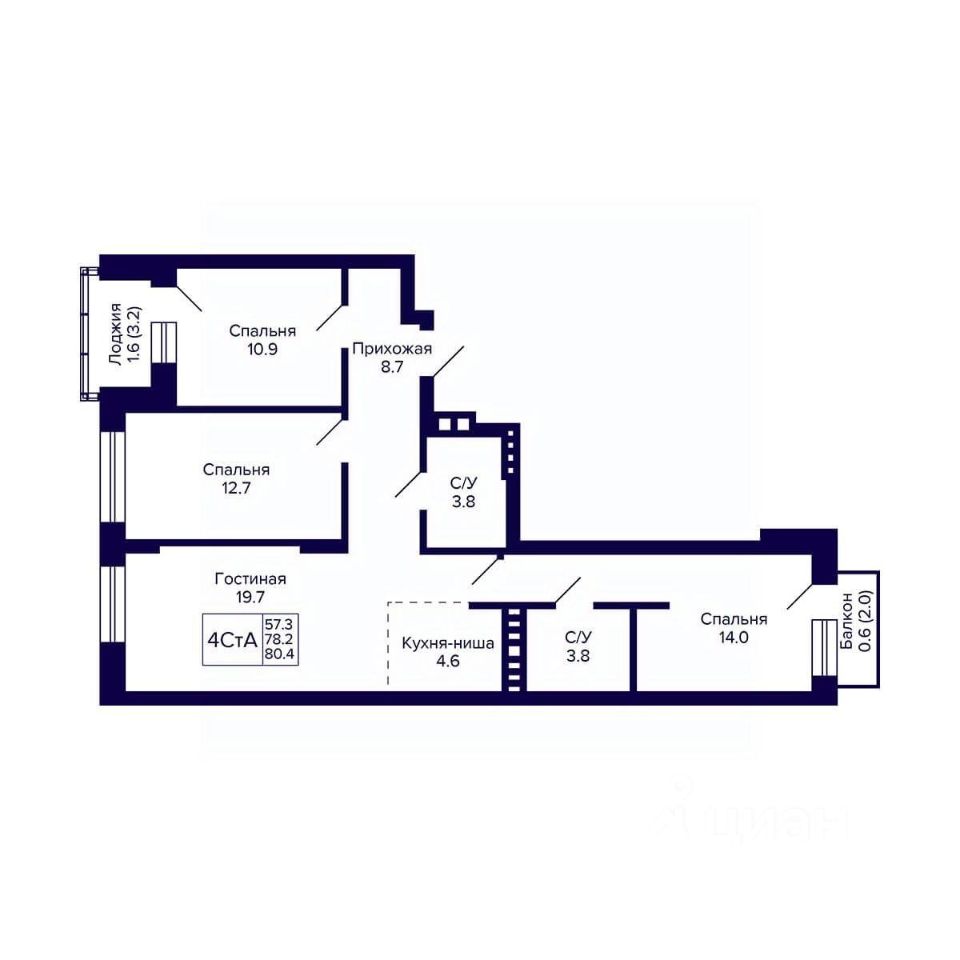 Общая площадь80,4 м²