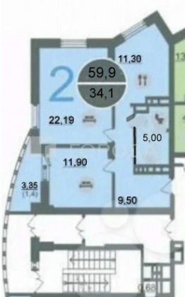 Общая площадь квартиры составляет 59 кв. м, из которых 34,1 кв. м — жилая площадь, а 11,3 кв. м — просторная кухня. Высота потолков 2,7 м создаёт ощущение простора и свободы. Дизайнерский ремонт позволит вам сразу заселиться и наслаждаться новым жильём без дополнительных вложений.