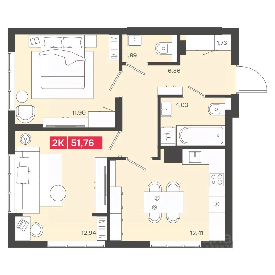 Общая площадь51,76 м²