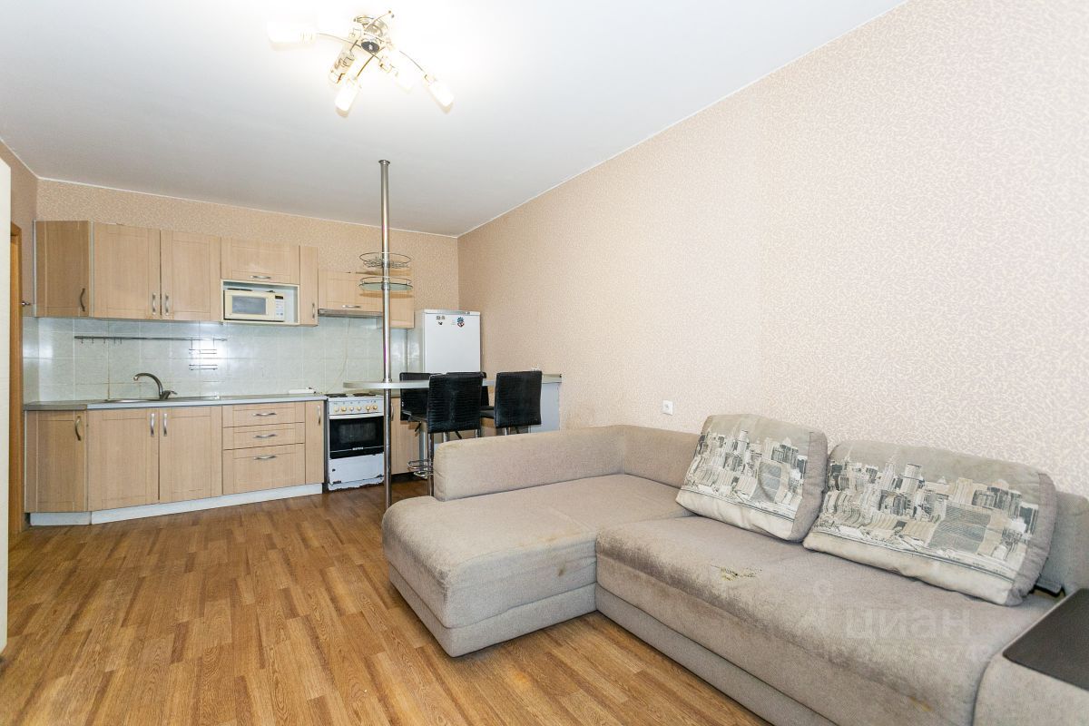 Ремонт выполнен в светлых тонах. В стоимость квартиры входят: кухонный гарнитур, электрическая плита, холодильник, стол и комплект из четырех стульев, диван, стенка с тумбой под телевизор в кухне-гостинной, шкаф и комод в комнате, встроенный шкаф в коридоре.