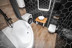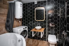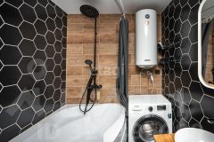 В сан.узле год назад выполнен полный ремонт с заменой сантехники и инженерии: Установлена большая угловая ванна, бойлер, кафельная плитка до потолка,