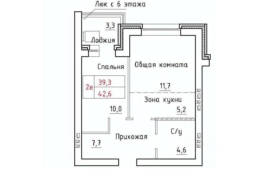 Общая площадь42,6 м²