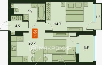 1 лоджия, 1 балкон