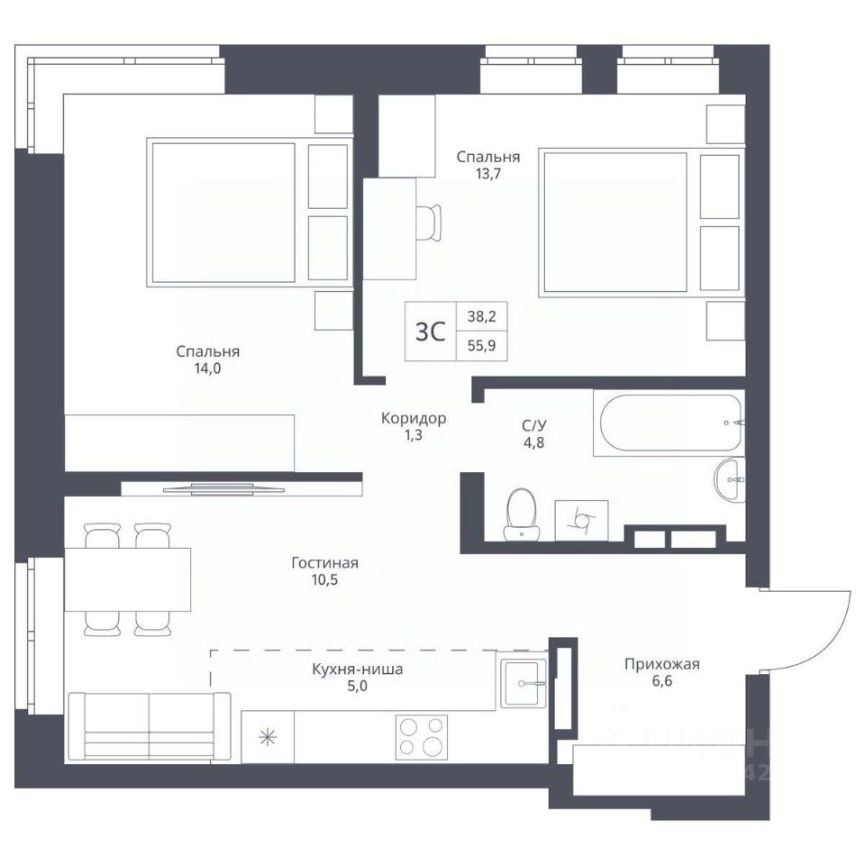 Продаётся 3-комнатная квартира в строящемся доме (Дом 1), срок сдачи: III-кв. 2028, общей площадью 55.9 кв.м., на 14 этаже. Группа компаний "ПОЛЯКОВ" начинает свой крупнейший на сегодня проект - Экоград "12 дворов" у Кольцово. Название отсылает к истокам: когда-то на этих землях стояла небольшая деревня Кривошапкина - всего 12 дворов.