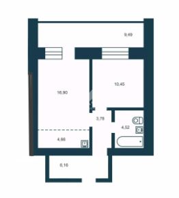 Продаётся 1-комнатная квартира площадью 46,6 кв. м в кирпичном доме 2020 года постройки. Здесь продуманная планировка.