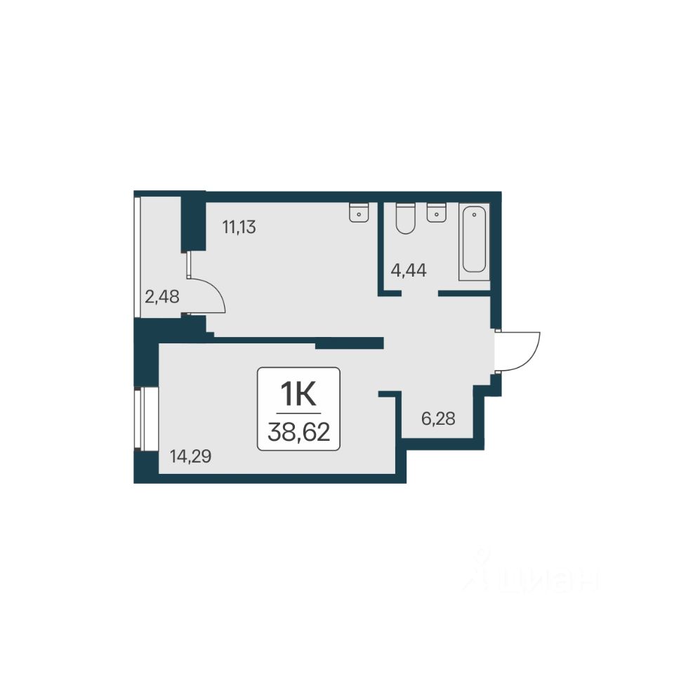 "В продаже 1-комнатная квартира, площадью 38.62, под номером 281 в новом Доме ЖК "Квартал на Игарской"." Жилой квартал "Расцветай на Игарской" - это счастливая жизнь в тихом и уютном квартале с увлекательным двором-парком!