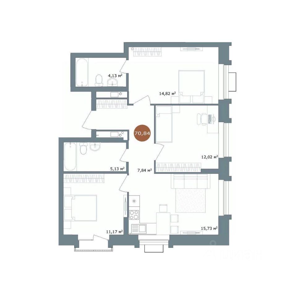 70,84 м²