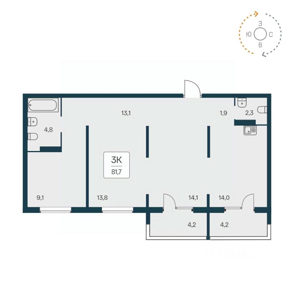 "В продаже 3-комнатная квартира, площадью 80.8, под номером 361 в новом Доме ЖК "Квартал на Игарской"." Жилой квартал "Расцветай на Игарской" - это счастливая жизнь в тихом и уютном квартале с увлекательным двором-парком!