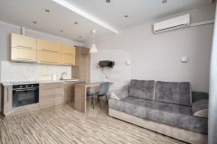 В квартире выполнен ремонт с использованием качественных материалов. Эргономичная планировка включает в себя: прихожую с зоной хранения одежды и предметов быта, сан.узел с полноразмерной ванной, кухню-гостиную с выделенной кухонной зоной и зоной отдыха с выходом на остекленную лоджию, в которой оборудован подпол, уютную спальню с зоной хранения . Ремонт выполнен в светлых тонах, что визуально расширяет пространство, а также создает атмосферу для комфортного проживания.
