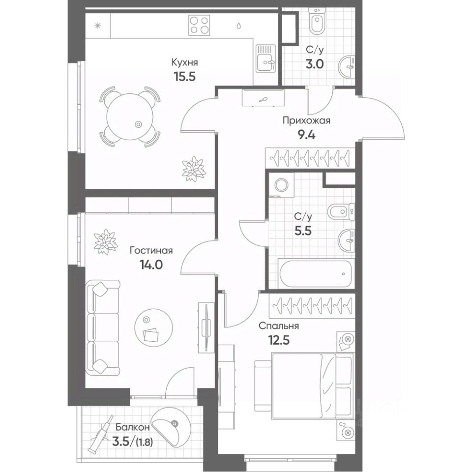 Продаётся 2-комнатная квартира в строящемся доме (Корпус 2), срок сдачи: III-кв. 2026, общей площадью 61.7 кв.м., на 12 этаже. "Счастье в Кольцово" - новый жилой комплекс Группы "Эталон" в р. п. Кольцово Новосибирской области.