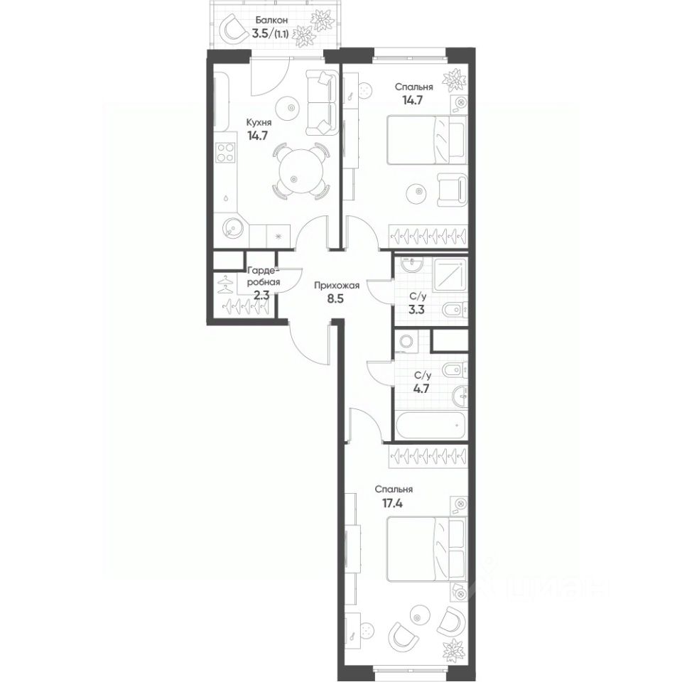 Продаётся 2-комнатная квартира в строящемся доме (Корпус 1), срок сдачи: II-кв. 2026, общей площадью 66.7 кв.м., на 4 этаже. "Счастье в Кольцово" - новый жилой комплекс Группы "Эталон" в р. п. Кольцово Новосибирской области.