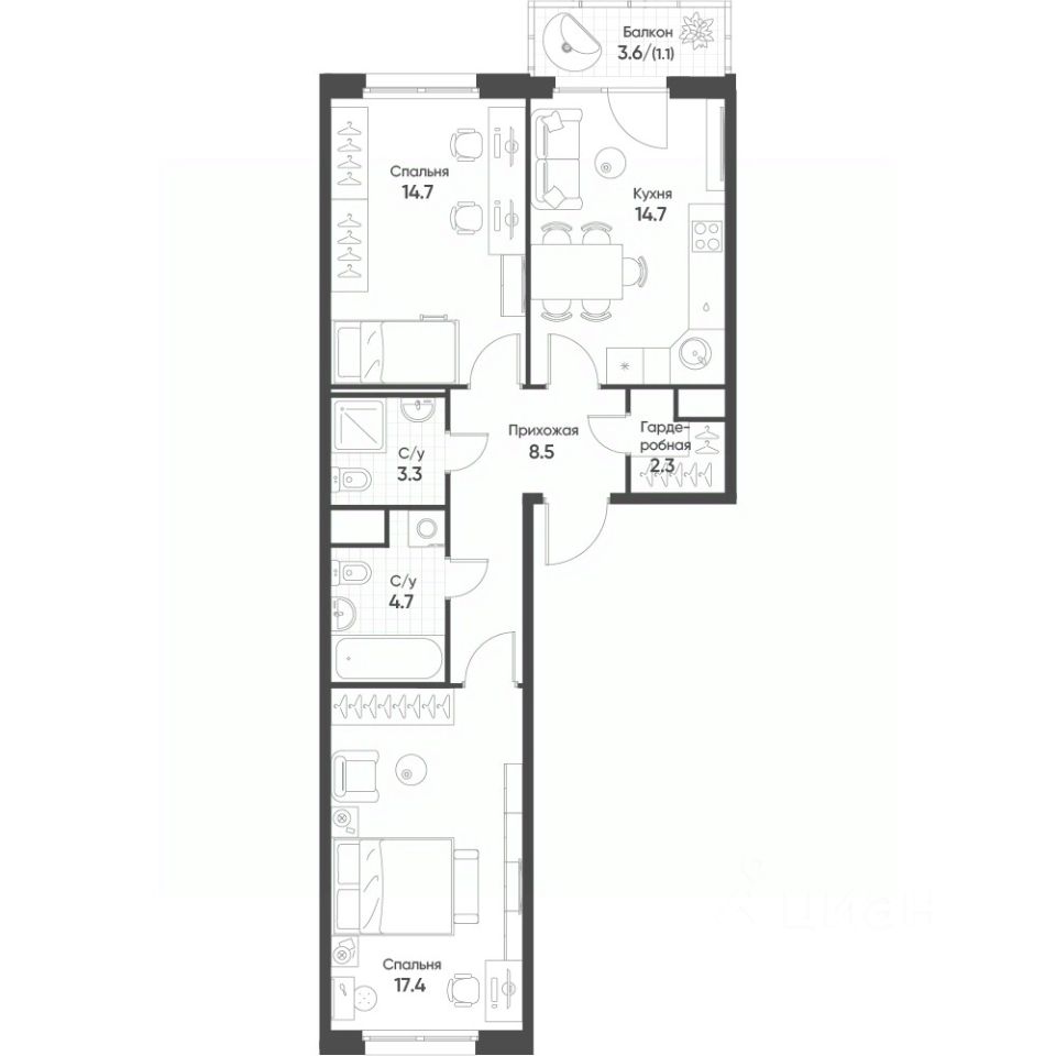 Продаётся 2-комнатная квартира в строящемся доме (Корпус 1), срок сдачи: II-кв. 2026, общей площадью 66.7 кв.м., на 6 этаже. "Счастье в Кольцово" - новый жилой комплекс Группы "Эталон" в р. п. Кольцово Новосибирской области.