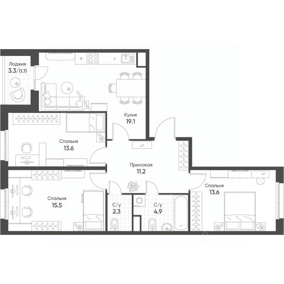 Продаётся 3-комнатная квартира в строящемся доме (Корпус 4-8), срок сдачи: III-кв. 2026, общей площадью 81.4 кв.м., на 6 этаже. "Счастье в Кольцово" - новый жилой комплекс Группы "Эталон" в р. п. Кольцово Новосибирской области.